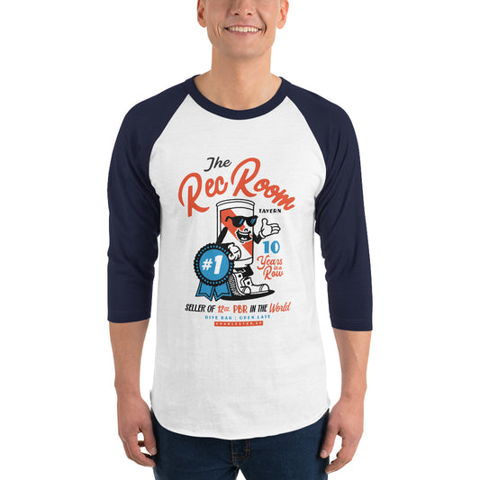 10 Years of PBR Recovery Room 3/4 sleeve raglan shirt